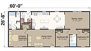 Beds: 3 Baths: 2 Sq Ft: 1600 W x L: 26′ 8″ x 60′ 0″
